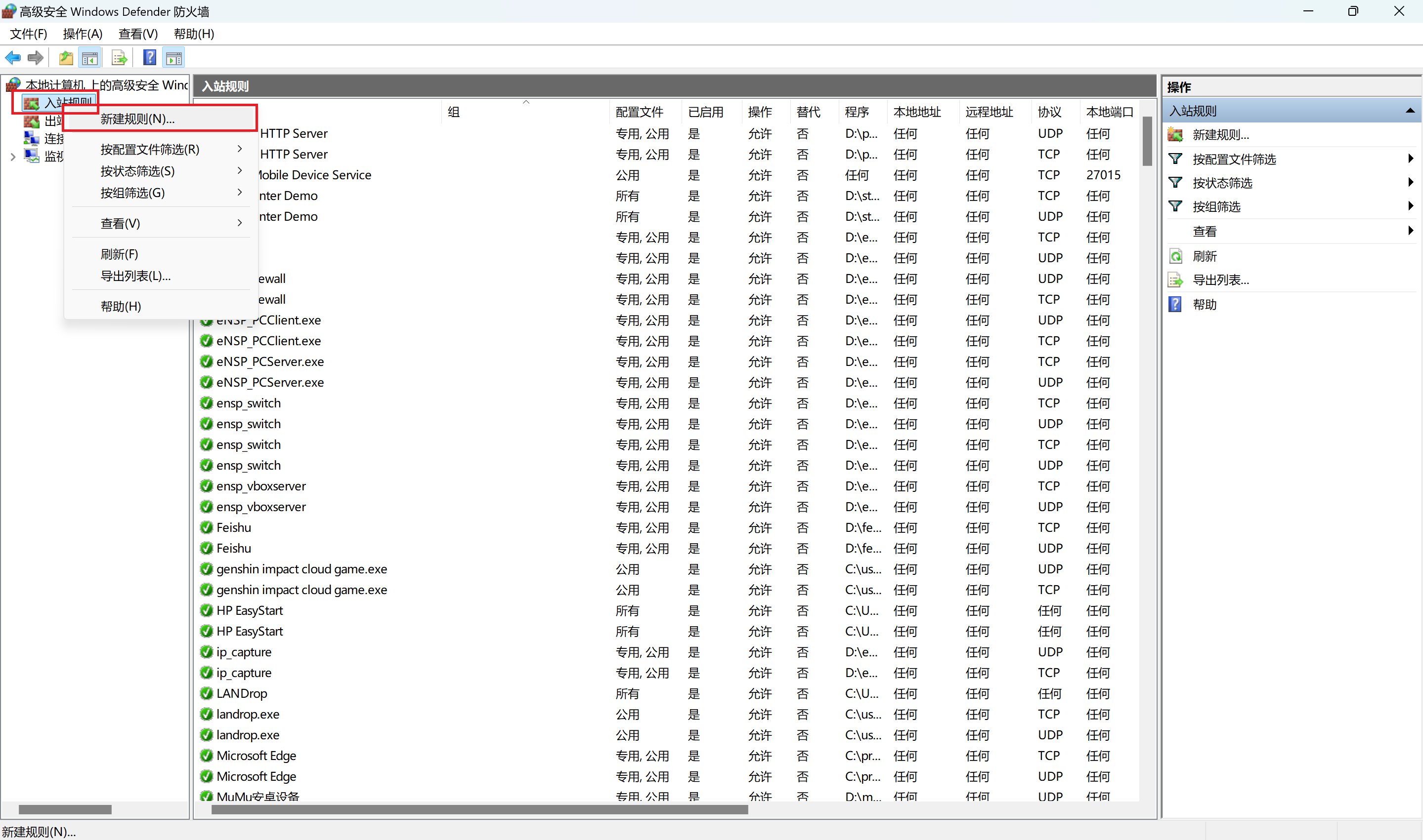 步骤三:新建一条windows的防火墙策略
