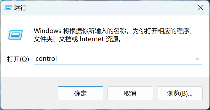 步骤一:Win+R,输入control打开控制面板
