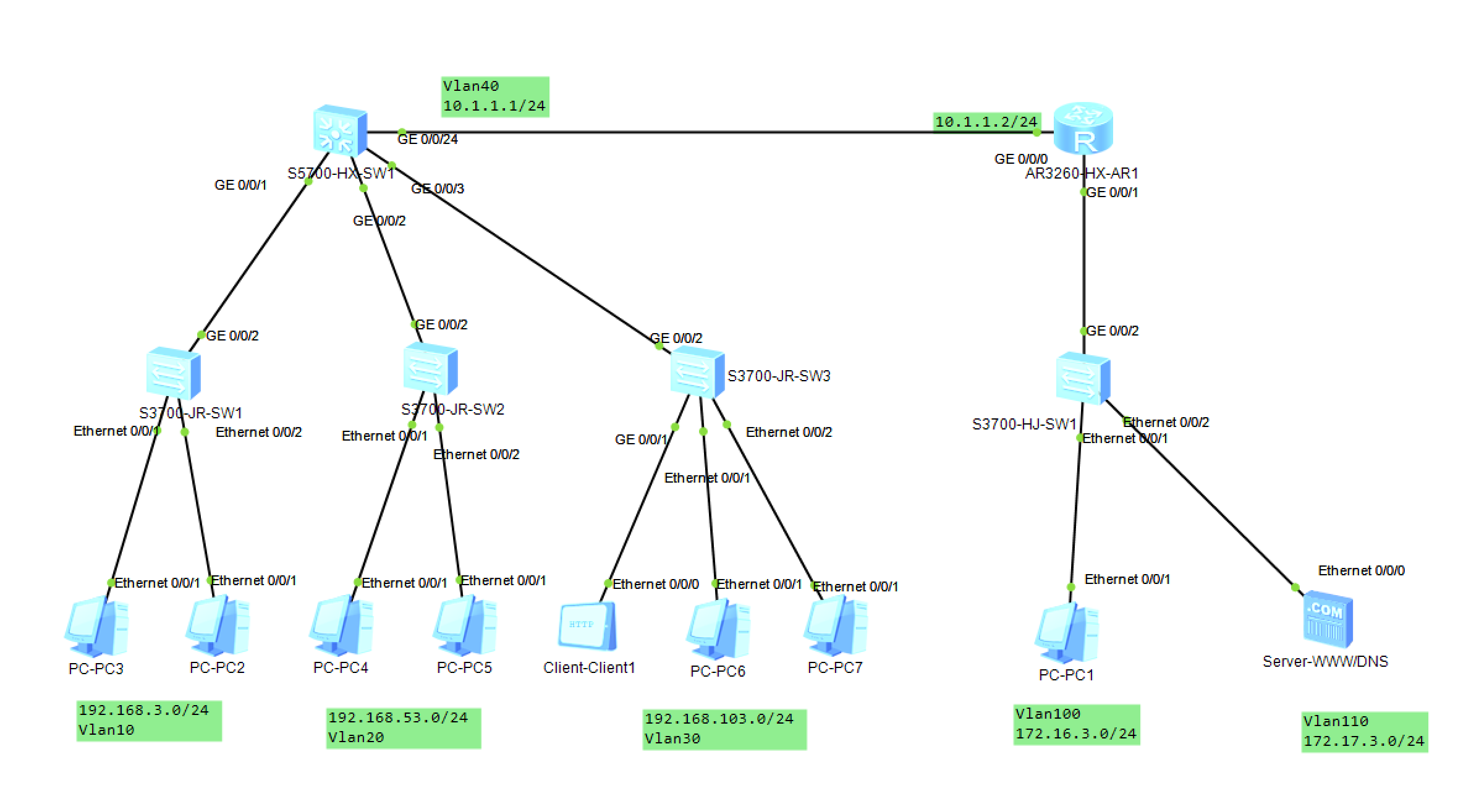 现在我们来模拟一个企业的网络环境,从而实现边学边用