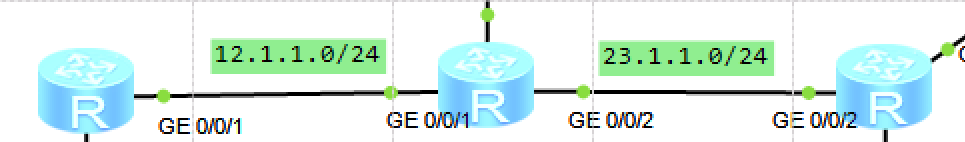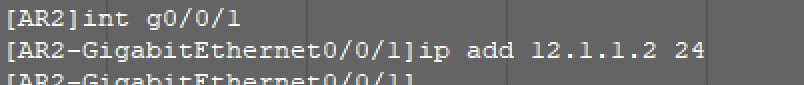 比如我这里的最左边的这台路由,我就需要进入GE0/0/1口,去配置对应的IP地址,即为12.1.1.1/24(注意:这里的12.1.1.0是网段,不可俩边都配12.1.1.0/24)