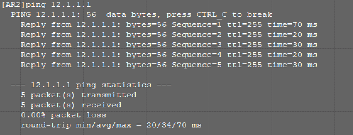 可以看到,这个AR1的路由涉及了两个网段(192.168.1.0/24和12.1.1.0/24)