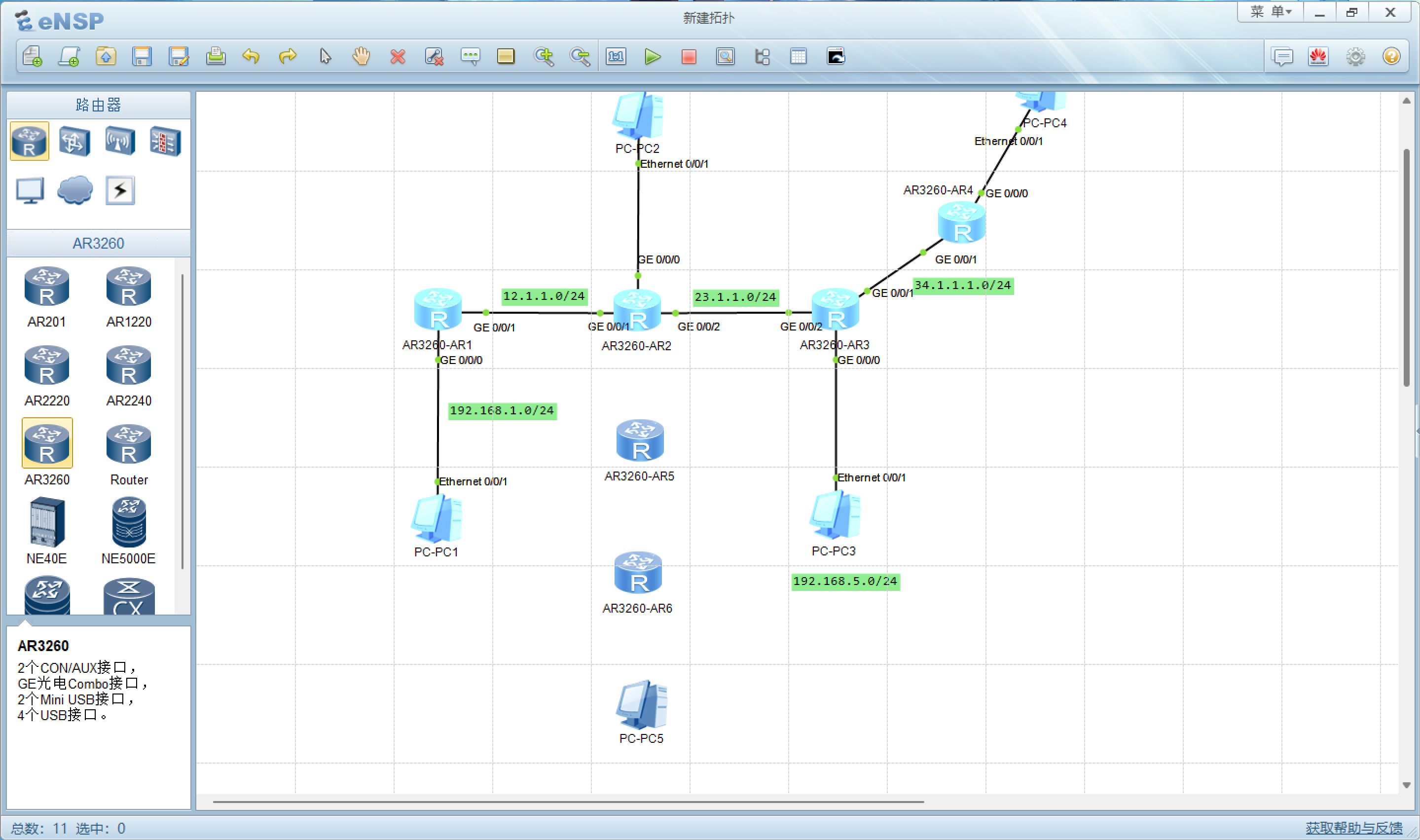 上图为我给路由器1,命名为AR1的截图