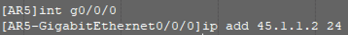 *注:不要忘记了这个AR2与以下设备连接的GE4/0/0端口也需要配端口IP,这个很重要,千万不能忘记和漏掉(通常情况下,我们习惯将上层设备配xx.xx.xx.1,下层配xx.xx.xx.2)