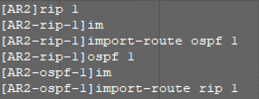 可以输入以下指令,实现Rip与OSPF的互通